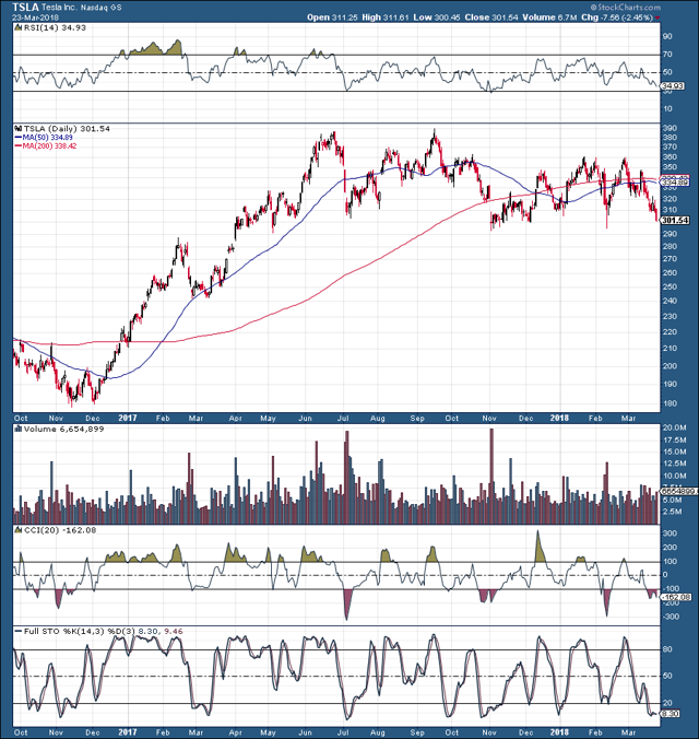 So, will $300 hold, will the stock rebound and move higher from here, or are Tesla shares headed for a breakdown instead? And what about longer term? Is there any hope for the company at all, and why in the world is Tesla worth $50 billion?